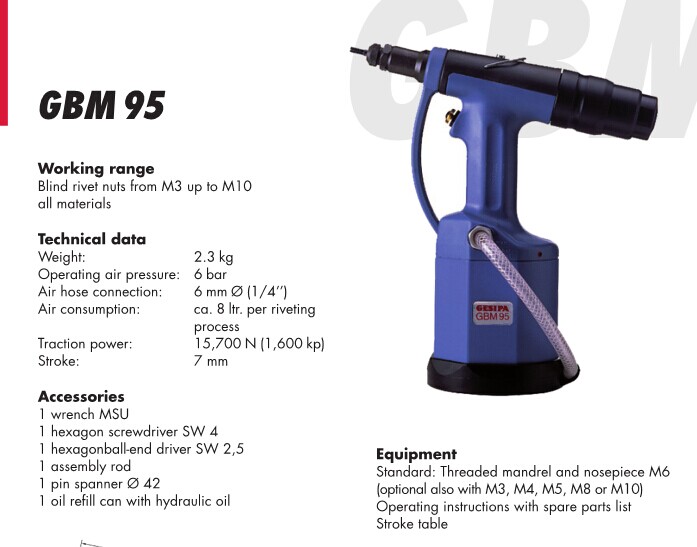 GBM95气动液压铆螺母工具 德国出品,质量保证! 有M6至M10可选.